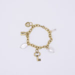 Show your everlasting love with the Key To My Heart charm bracelet. The locks represent eternal love, and the key is the link to opening your heart. Set with freshwater pearls and an antiqued gold loop chain, this bracelet makes a great gift, whether for yourself or someone else.