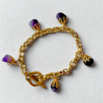 Expertly crafted with a thick interwoven chain and adorned with pure decorative amethyst stones, the Love in Bloom Bracelet is a statement piece that adds both style and sophistication to any outfit. The toggle clasp makes this chunky bracelet a must-have for any jewelry lover.