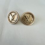 We took these once-used, 90’s era, authentic gold Louis Vuitton monogrammed replacement buttons and turned them into earrings.