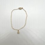 This single stone bracelet is a dangling square-shaped cubic zirconia stone wrapped in gold-filled material, attached by a jump ring to a chain bracelet made of 14k gold-filled Italian chain. The pierced stone floats and shimmers with movement.